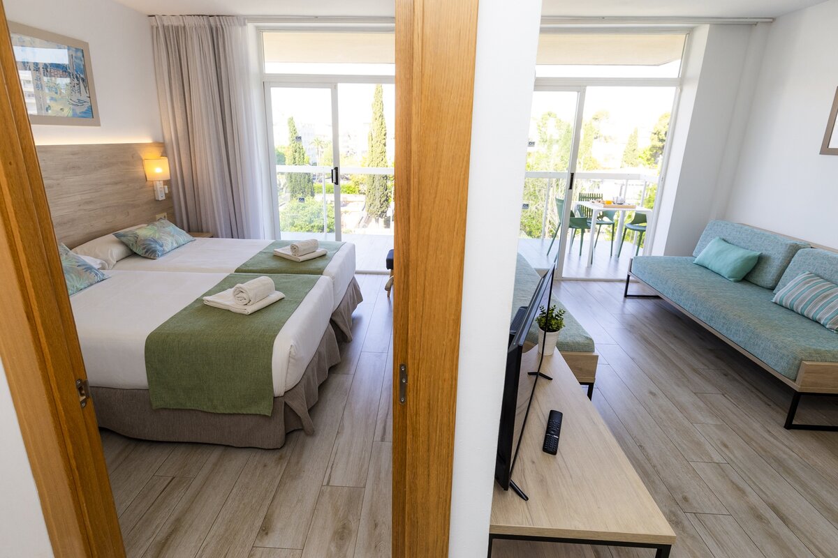 Difieren de los Apartamentos Gran Familia por su situación (con vistas a la piscina y una orientación Sur o Sur Oeste), su amplia terraza y un menaje distinto. Así mismo, dispone de un cuarto de baño de diseño con amplia ducha.
